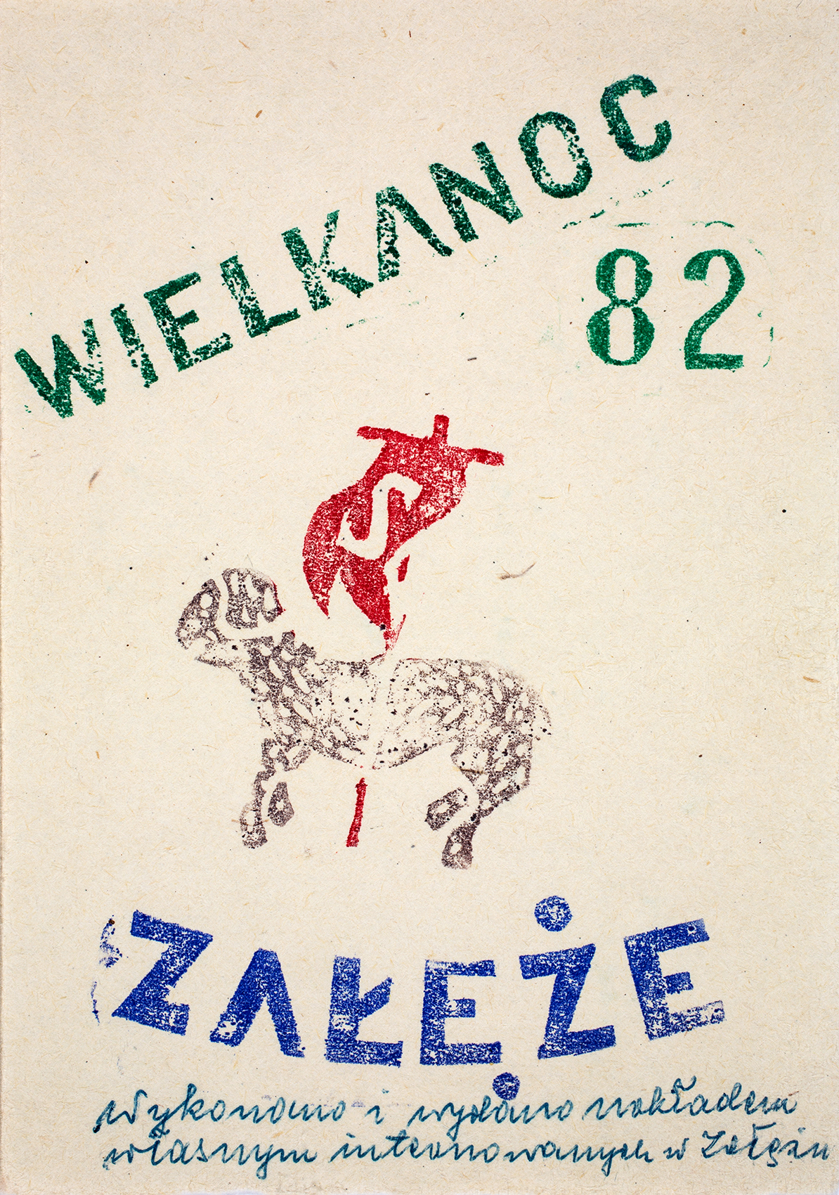 Zdjęcie 009. Kartka wielkanocna wykonana w 1982 r. w obozie dla internowanych w Uhercach. Ze Zbioru Jana Kota.