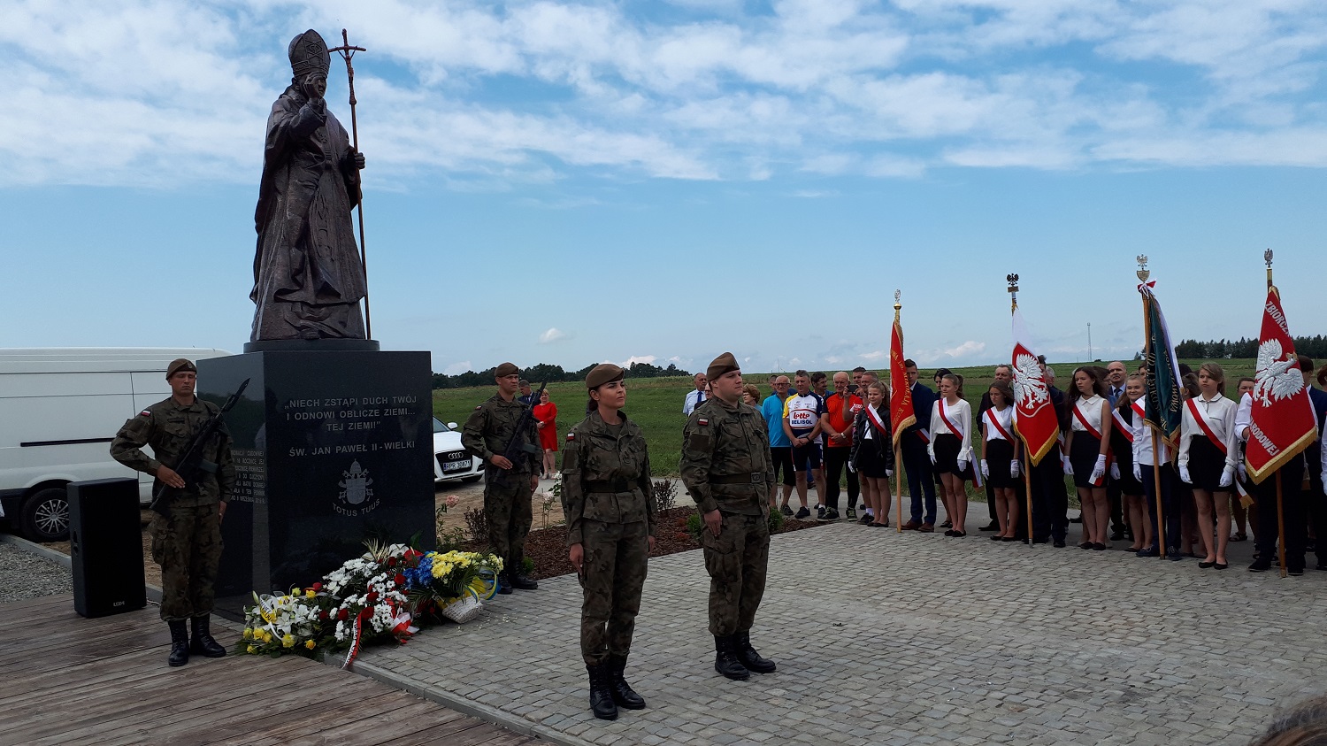 Symbolizująca Niepodległość Polski flaga narodowa, na liczącym 32 metry wysokości maszcie oraz 25 metrowy krzyż, wyższy niż na Giewoncie, powstały w 2018 r., zapoczątkowując proces budowy miejsca pamięci narodowej poświęconego wielkim Polakom. Kolejnym etapem tego przedsięwzięcia było uroczyste odsłonięcie figury Jana Pawła II w 2019 r. Miejsce to powstało staraniem proboszcza parafii w Tuligłowach