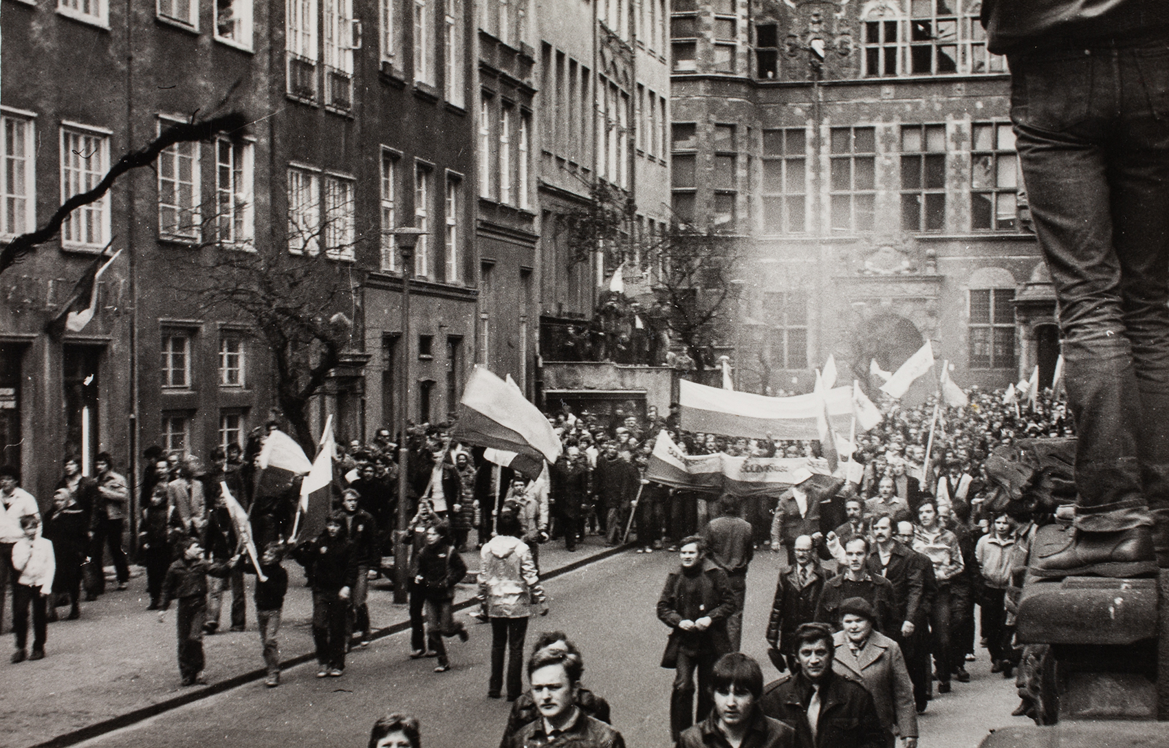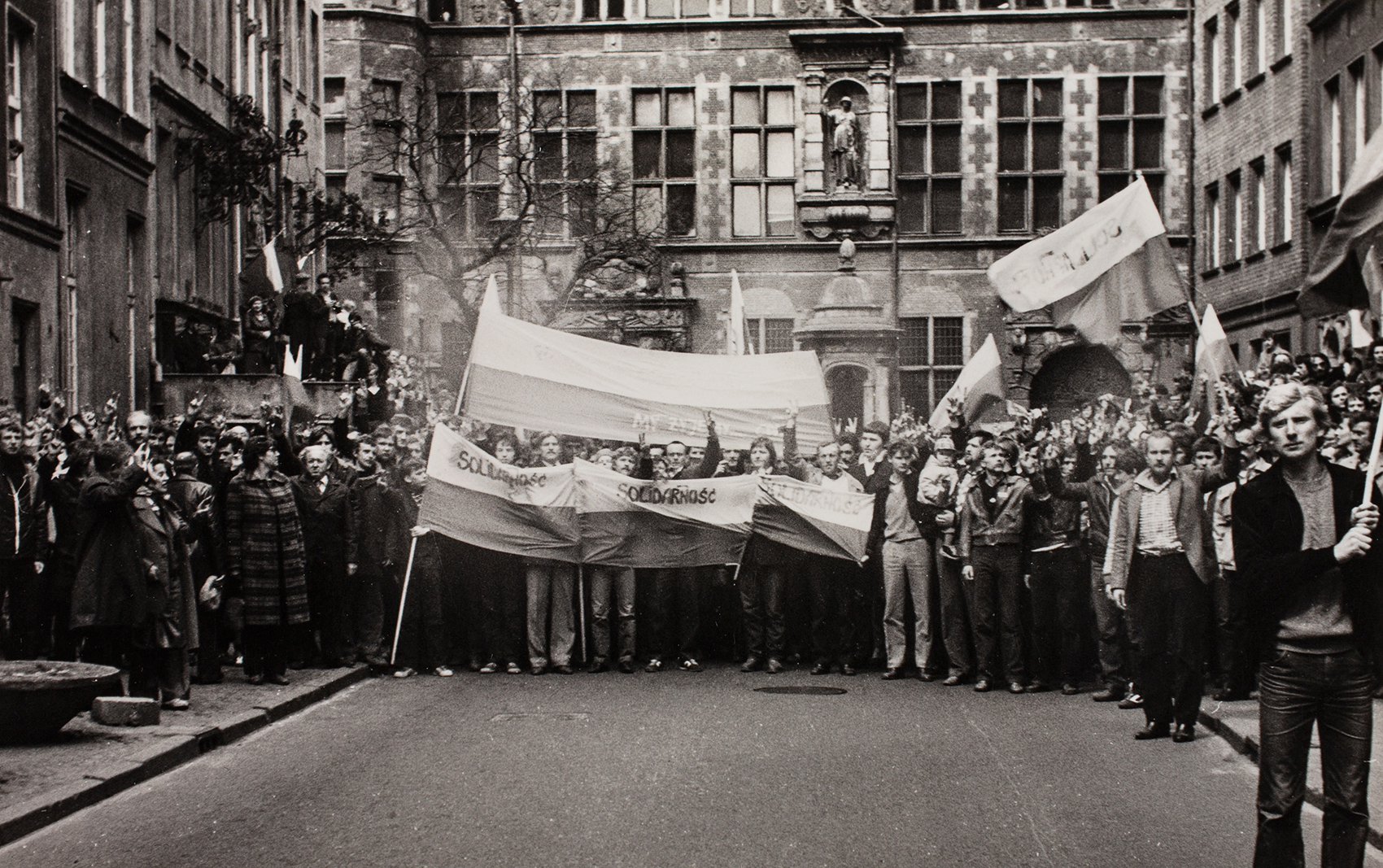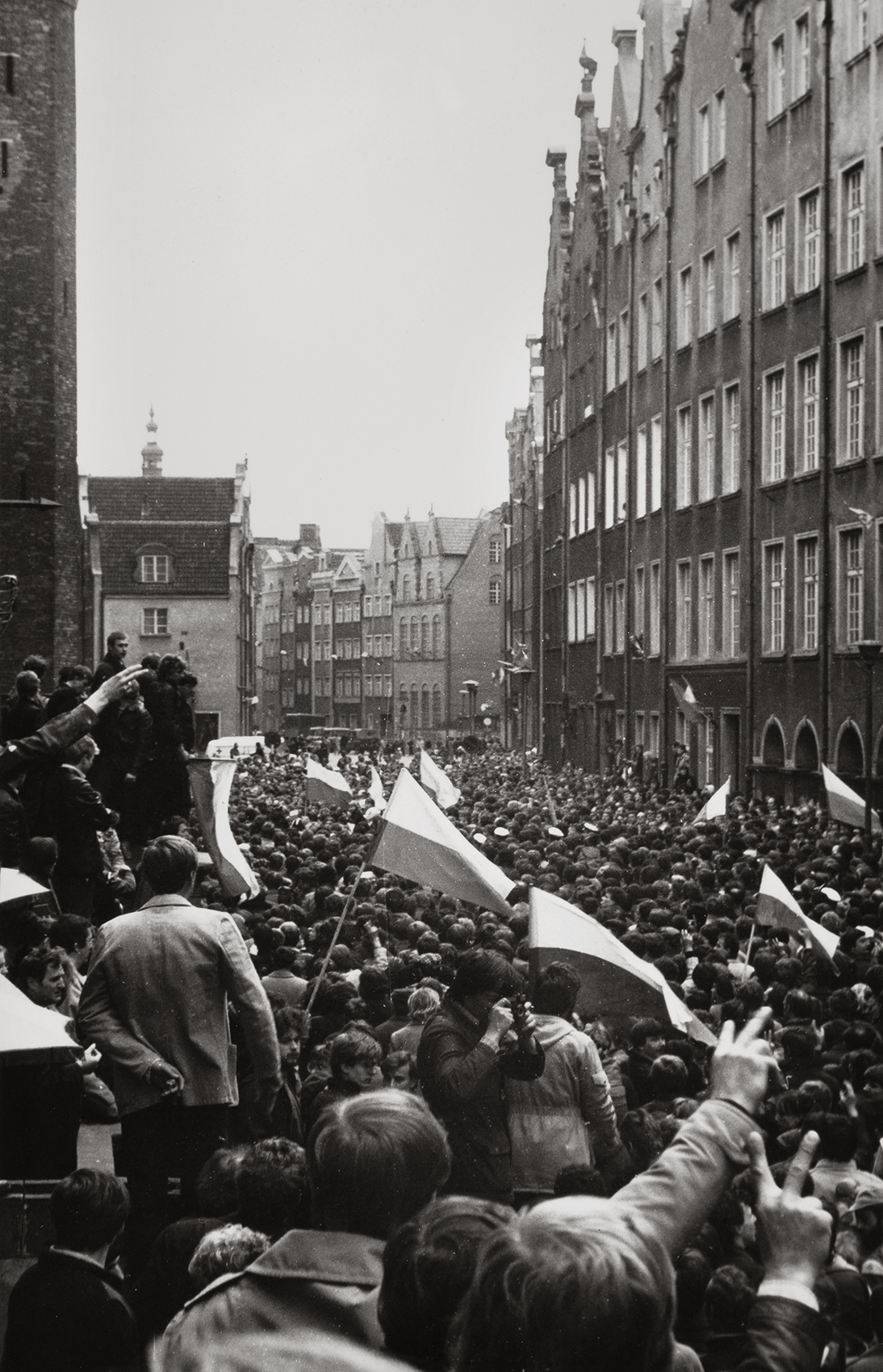 Zdjęcia z manifestacji zorganizowanej 1 maja 1982 r. w Gdańsku przez zwolenników zdelegalizowanej „Solidarności” przekazał naszemu archiwum pan Zdzisław Dziura, działacz „Solidarności” ze Stalowej Woli. Autor zdjęć nie jest nam znany, choć być może po tej publikacji na stronie internetowej autor się odnajdzie, na co bardzo liczymy. Trzeba dopowiedzieć, że była to jedna z największych w stanie wojennym manifestacji w Polsce, gromadząca kilkadziesiąt tysięcy osób. Na zdjęciach widzimy manifestantów idących ul. Piwną w kierunku Bazyliki Mariackiej Wniebowzięcia NMP w Gdańsku. Wielu trzyma w dłoniach flagi narodowe, liczne są też transparenty i flagi „solidarnościowe”, część osób podnosi ręce pokazując palcami literę V – znak zwycięstwa (victory), widoczna jest podniosła atmosfera, a jednocześnie pełne niepokoju oczekiwanie na akcję sił ZOMO.