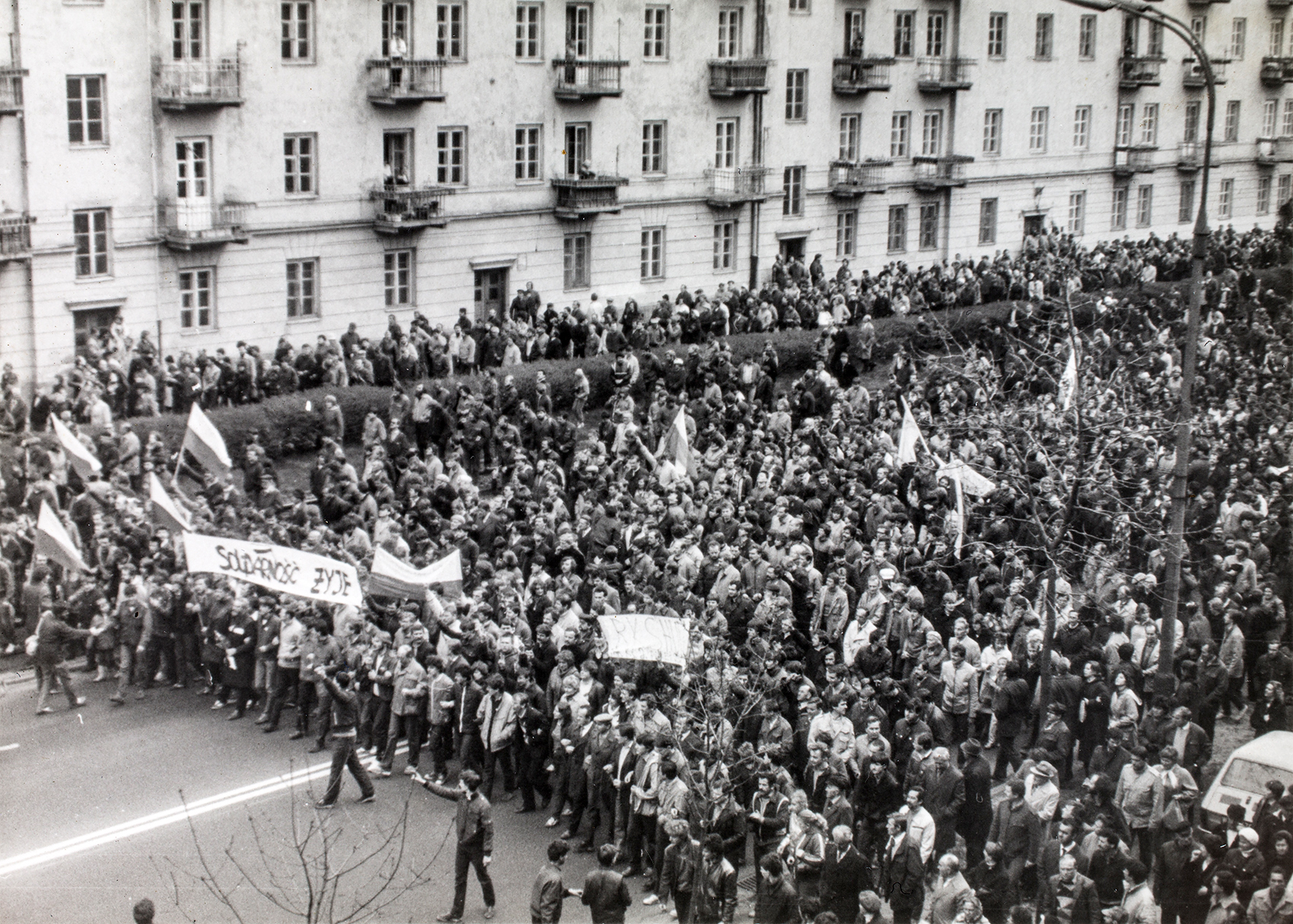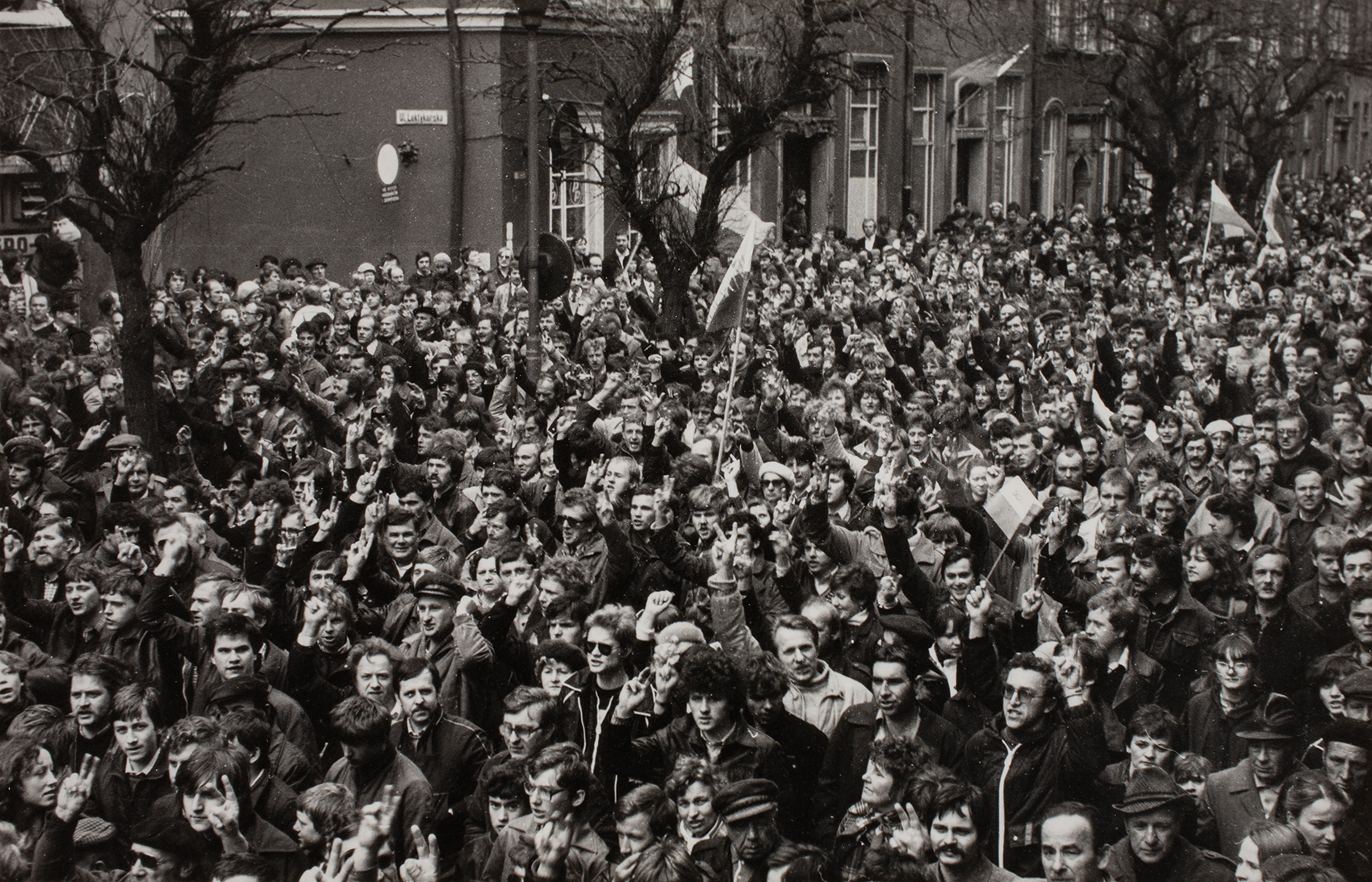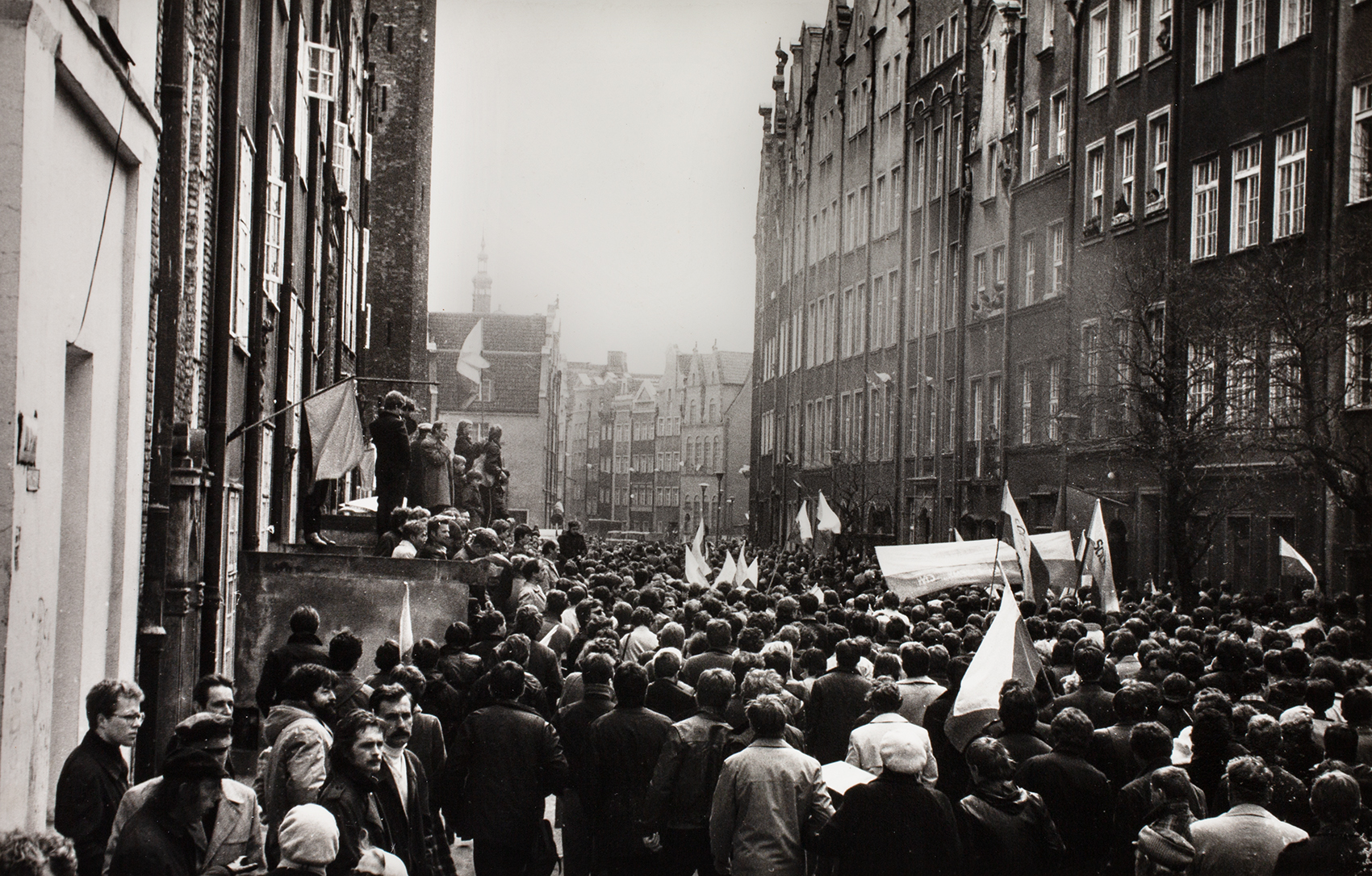 Zdjęcia z manifestacji zorganizowanej 1 maja 1982 r. w Gdańsku przez zwolenników zdelegalizowanej „Solidarności” przekazał naszemu archiwum pan Zdzisław Dziura, działacz „Solidarności” ze Stalowej Woli. Autor zdjęć nie jest nam znany, choć być może po tej publikacji na stronie internetowej autor się odnajdzie, na co bardzo liczymy. Trzeba dopowiedzieć, że była to jedna z największych w stanie wojennym manifestacji w Polsce, gromadząca kilkadziesiąt tysięcy osób. Na zdjęciach widzimy manifestantów idących ul. Piwną w kierunku Bazyliki Mariackiej Wniebowzięcia NMP w Gdańsku. Wielu trzyma w dłoniach flagi narodowe, liczne są też transparenty i flagi „solidarnościowe”, część osób podnosi ręce pokazując palcami literę V – znak zwycięstwa (victory), widoczna jest podniosła atmosfera, a jednocześnie pełne niepokoju oczekiwanie na akcję sił ZOMO.