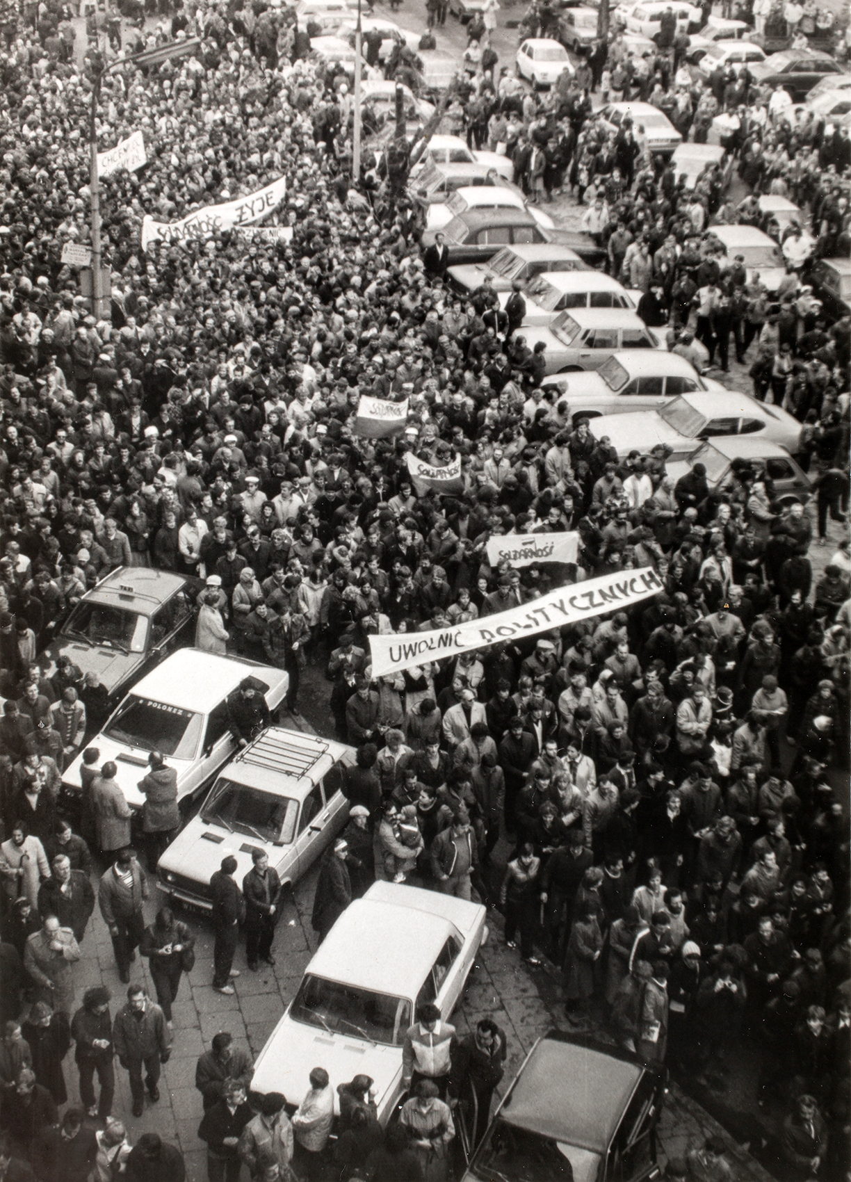 Zdjęcia z manifestacji zorganizowanej 1 maja 1985 r. w Warszawie przez działaczy nielegalnej „Solidarności” przekazał archiwum IPN w Rzeszowie pan Zbigniew Kulczycki. Autor zdjęć nie jest znany, ale dzięki m.in. informacjom udzielonym przez pana Henryka Wujca oraz licznym wskazówkom znalezionym na stronach internetowych, można było w miarę dokładnie zdjęcia opisać. Wiadomo, że zdjęcia zostały wykonane w czasie i bezpośrednio po Mszy św. sprawowanej o godz. 10.00 w święto św. Józefa robotnika w kościele pw. św. Stanisława Kostki na warszawskim Żoliborzu. Po mszy kilkanaście tysięcy ludzi uformowało pochód, którym przeszli z transparentami i flagami narodowymi ulicą Krasińskiego w kierunku Placu Komuny Paryskiej (od 1990 r. Plac Wilsona), a następnie ul. Słowackiego i Stołeczną (od 1993 r. ul. Ks. Jerzego Popiełuszki) – do skrzyżowania ul. Stołecznej z ul. Krasińskiego, gdzie pochód został zatrzymany przez funkcjonariuszy MO. Uczestnicy skandowali m.in.: „Nowe związki na Powązki!”, przypinali sobie znaczki „Solidarności”, atmosfera była wspaniała. W niektórych bocznych uliczkach czaili się zomowcy, którzy obserwowali manifestantów i czekali na sygnał do rozpędzenia manifestacji. Henryk Wujec pisał, że w czasie, kiedy po mszy zaczął się nielegalny pochód „czerwoni bronili pochodu 1-majowego w centrum Warszawy i do głowy im nie przyszło, że ruszymy od św. Stanisława Kostki. […] Zrobiliśmy wielki pochód solidarnościowy, to było coś fantastycznego, szliśmy jak w wolnym kraju. W pochodzie widać Seweryna Jaworskiego – wiceprzewodniczącego Regionu Mazowsze NSZZ „Solidarność”, Macieja Jankowskiego – jednego z liderów podziemnej „Solidarności” i wielu innych znanych działaczy opozycji. W którymś momencie nadjechały posiłki MO i nas zatrzymały. Jacek Kuroń prowadził negocjacje o pokojowe zakończenie pochodu. Zostałem potem skazany na trzy miesiące więzienia, które odsiedziałem na Rakowieckiej w 1986 r.”