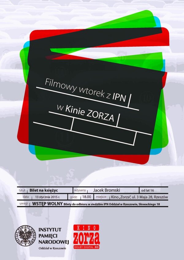 13/01/2015Filmowe wtorki z IPN w kinie Zorza – pokaz filmu „Bilet na księżyc” w reżyserii Jacka Bromskiego – Rzeszów, 13 stycznia 2014