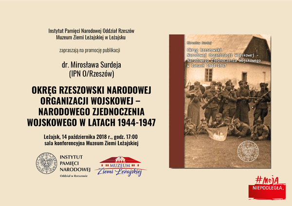 14/10/2018Promocja książki dr. Mirosława Surdeja „Okręg Rzeszowski. Narodowej Organizacji Wojskowej – Narodowego Zjednoczenia Wojskowego w latach 1944–1947” – Leżajsk, 14 października 2018