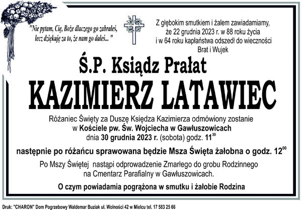 30/12/2023PożegnanieNa wieczną wartę odszedł ks. prał. płk Kazimierz Latawiec