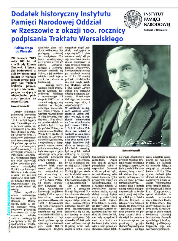 26/06/2019Dodatek historyczny z okazji 100. rocznicy podpisania Traktatu Wersalskiego