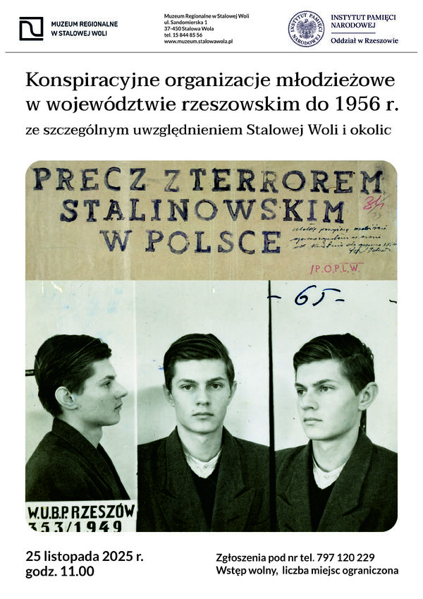 25/11/2025WykładZaproszenie na wykład „Konspiracyjne organizacje młodzieżowe w województwie rzeszowskim do 1956 r. ze szczególnym uwzględnieniem Stalowej Woli i okolic” – Stalowa Wola, 25 listopada 2025