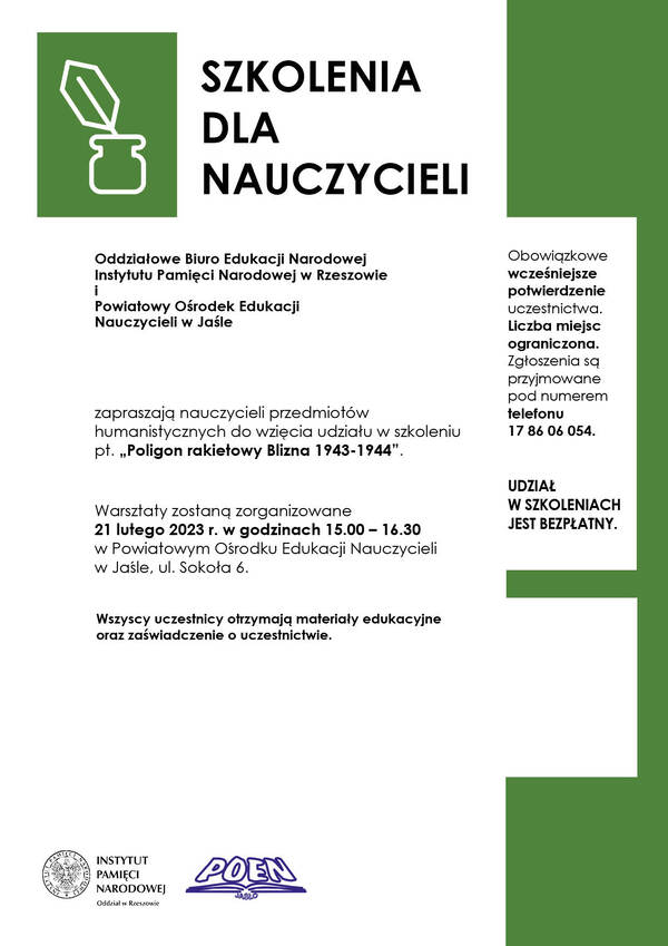 06/02/2023Dla nauczycieliSzkolenie dla nauczycieli „Poligon rakietowy Blizna 1943-1944” – Jasło, 21 lutego 2023