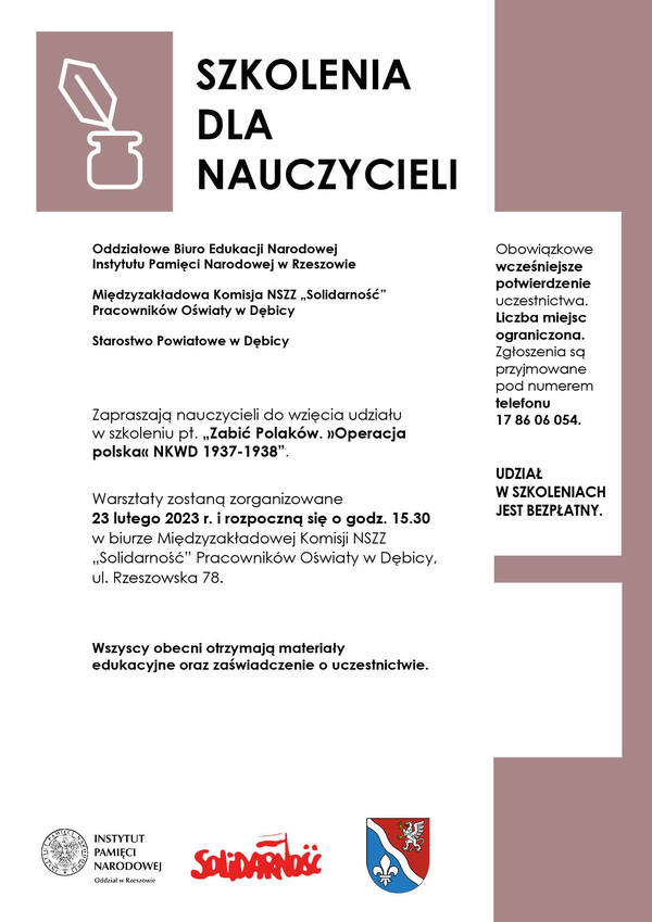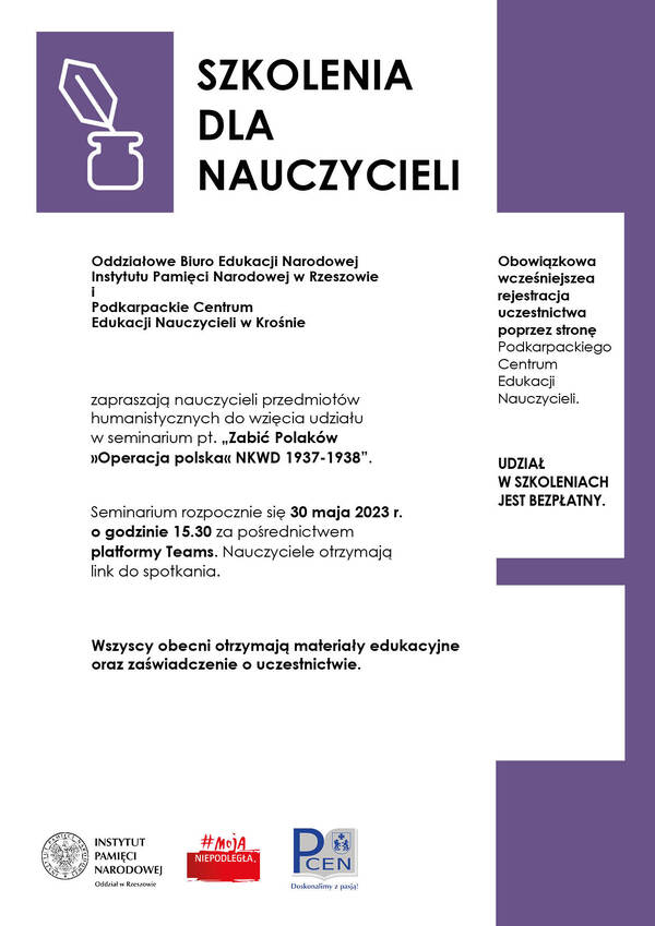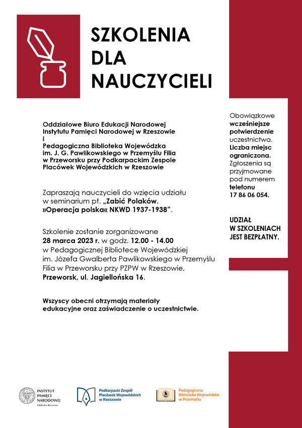16/03/2023Dla nauczycieliSeminarium dla nauczycieli „Zabić Polaków »Operacja polska« NKWD 1937-38” – Przeworsk, 28 marca 2023