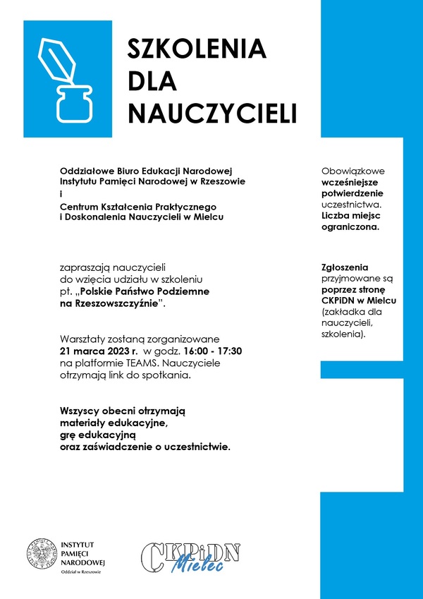 10/03/2023Dla nauczycieli„Polskie Państwo Podziemne na Rzeszowszczyźnie” – szkolenie dla nauczycieli na platformie TEAMAS