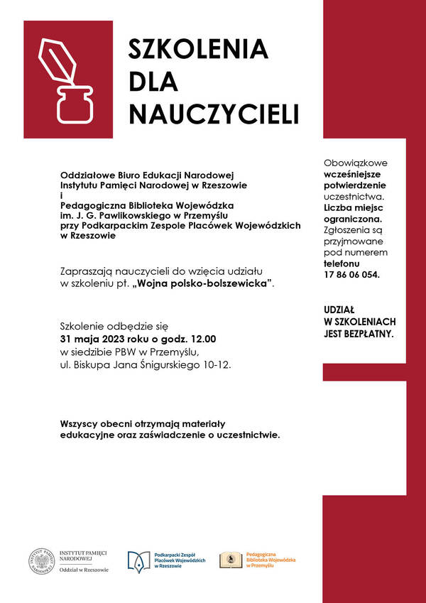 24/05/2023Dla nauczycieliSzkolenie dla nauczycieli „Wojna polsko - bolszewicka” – Przemyśl, 31 maja 2023