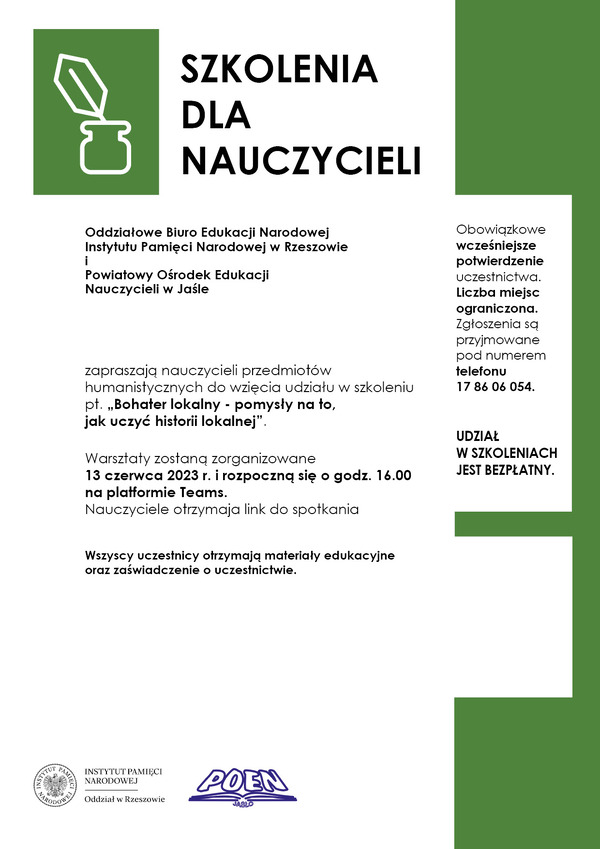 02/06/2023Dla nauczycieliSzkolenie dla nauczycieli „Bohater lokalny - pomysł na to, jak uczyć historii lokalnej” – Krosno, 13 czerwca 2023