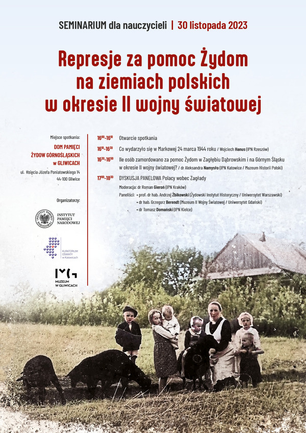 30/11/2023Dla nauczycieliSeminarium dla nauczycieli „Represje za pomoc Żydom na ziemiach polskich w okresie II wojny światowej" - Gliwice, 30 listopada 2023