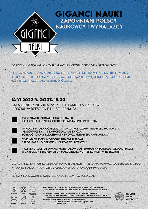 13/06/2022Dla nauczycieliSeminarium dla nauczycieli „Giganci Nauki zapomniani polscy naukowcy” – Rzeszów, 14 czerwca 2022