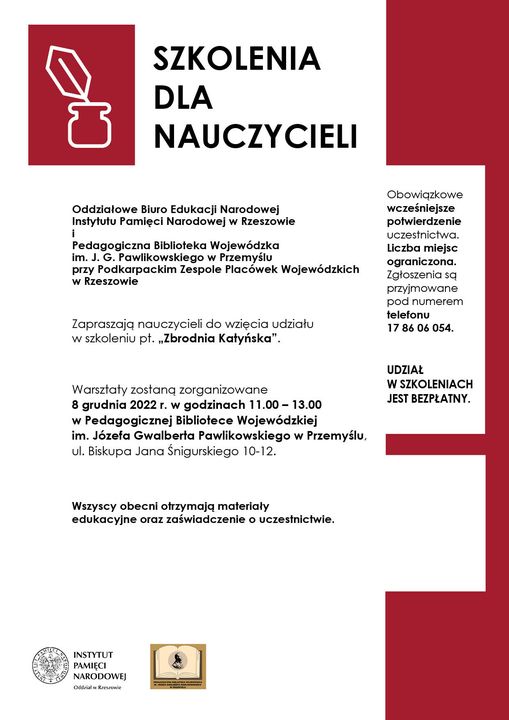 06/12/2022Dla nauczycieliZbrodnia Katyńska - zaproszenie na szkolenie