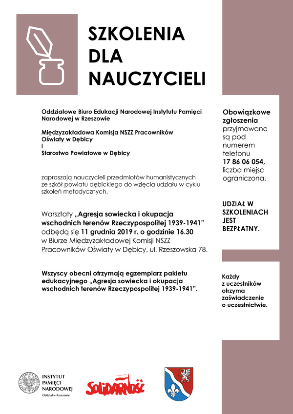 12/03/2020Dla nauczycieliWarsztaty dla nauczycieli przedmiotów humanistycznych o Zbrodni Katyńskiej – Dębica, 12 marca 2020
