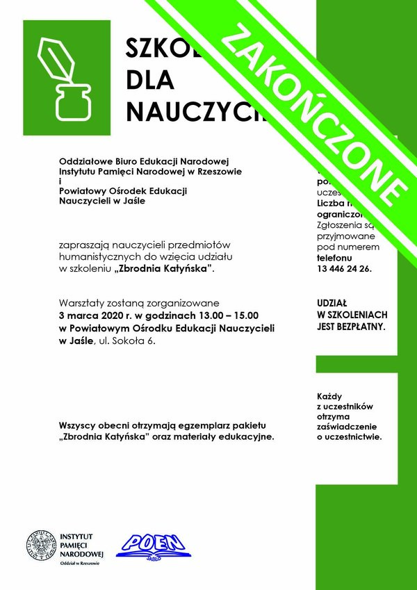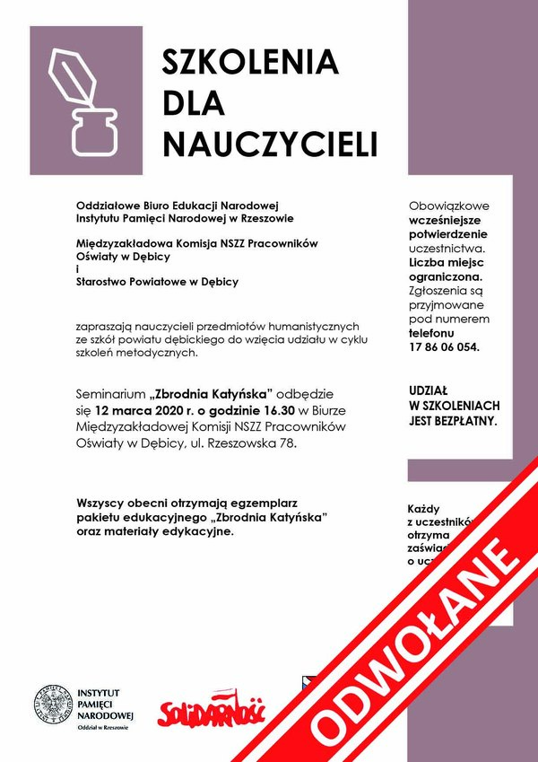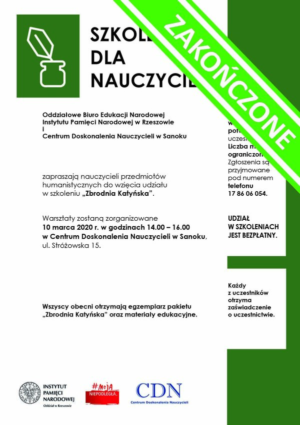 11/03/2020Dla nauczycieliSzkolenia dla nauczycieli pt. „Zbrodnia Katyńska” - ODWOŁANE