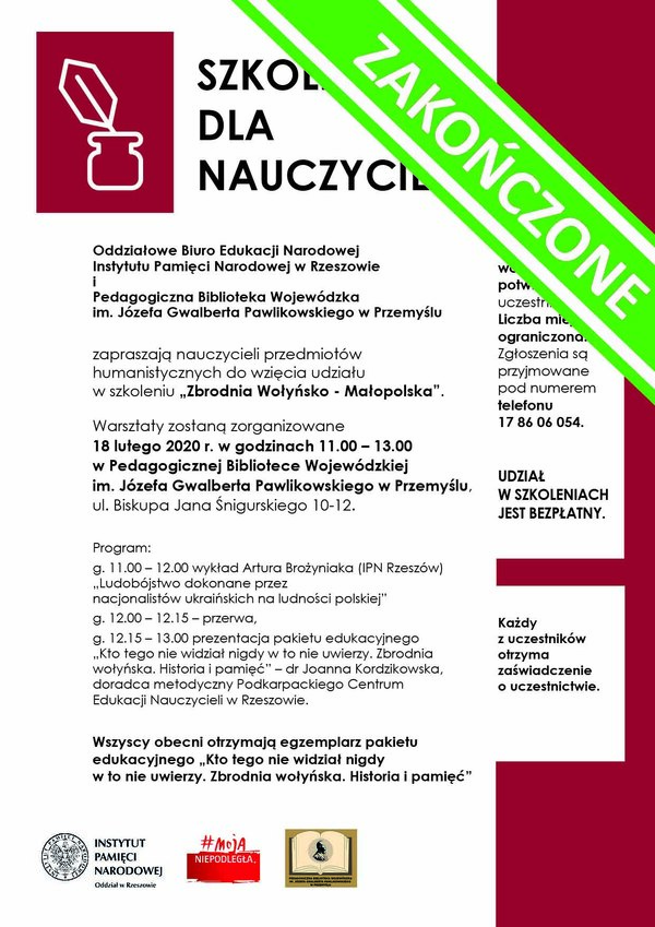 11/02/2020Dla nauczycieliWarsztaty IPN o Zbrodni Wołyńskiej dla nauczycieli historii – Brzozów, 11 lutego 2020