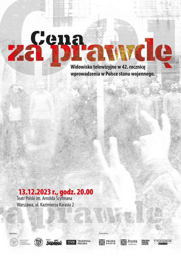 13/12/2023Koncert„Cena za prawdę” – widowisko w 42. rocznicę wprowadzenia stanu wojennego poświęcone kobietom internowanym w Gołdapi – Warszawa, 13 grudnia 2023