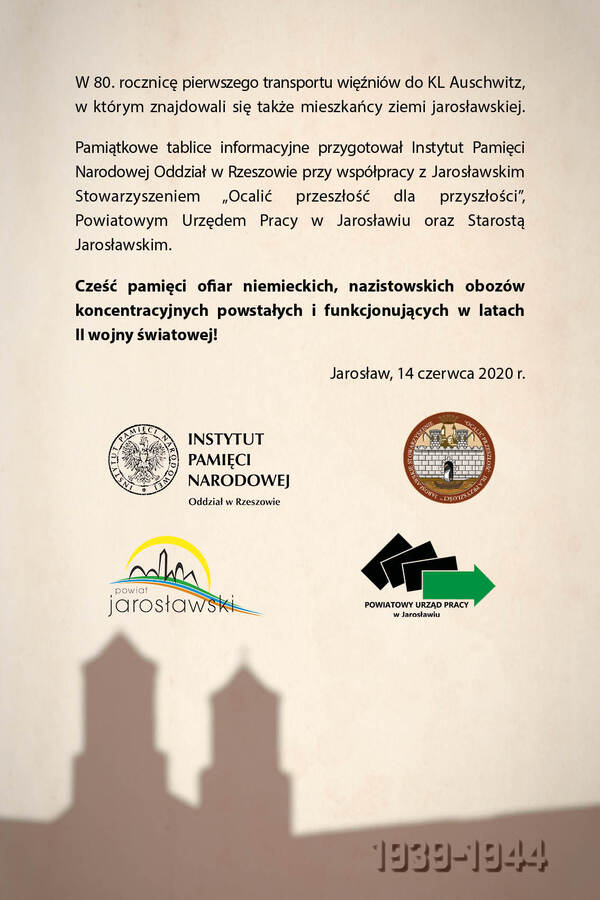 14/06/2020Wystawa„Niemiecka okupacja Jarosławia. Pamięć ofiar niemieckiego terroru” – wystawa z okazji 80. rocznicy wywózki mieszkańców Jarosławia do KL Auschwitz