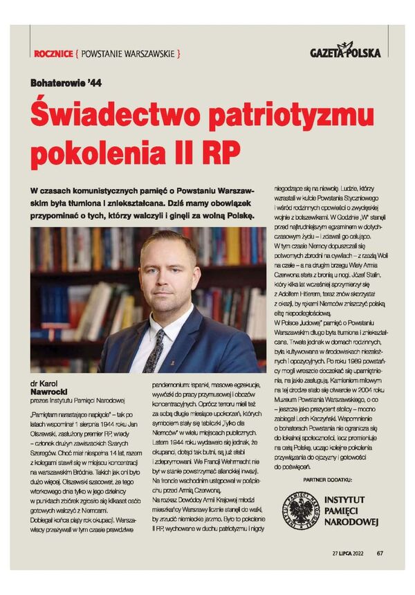 27/07/2022Dodatek IPNDodatek do „Gazety Polskiej” w 78 rocznicę Powstania Warszawskiego [PDF]