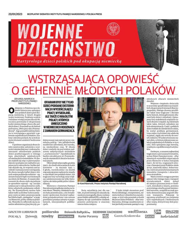 23/01/2023Dodatek IPN„Wojenne dzieciństwo. Martyrologia dzieci polskich pod okupacją niemiecką” – dodatek prasowy IPN w „Dzienniku Łódzkim” (23 stycznia 2023)