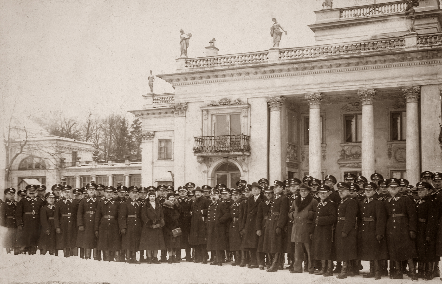 Zdjęcie 005. Funkcjonariusze Policji Państwowej na wycieczce przed Pałacem na Wodzie w Łazienkach Królewskich w Warszawie. Czternasty od lewej – starszy posterunkowy Józef Laska. -