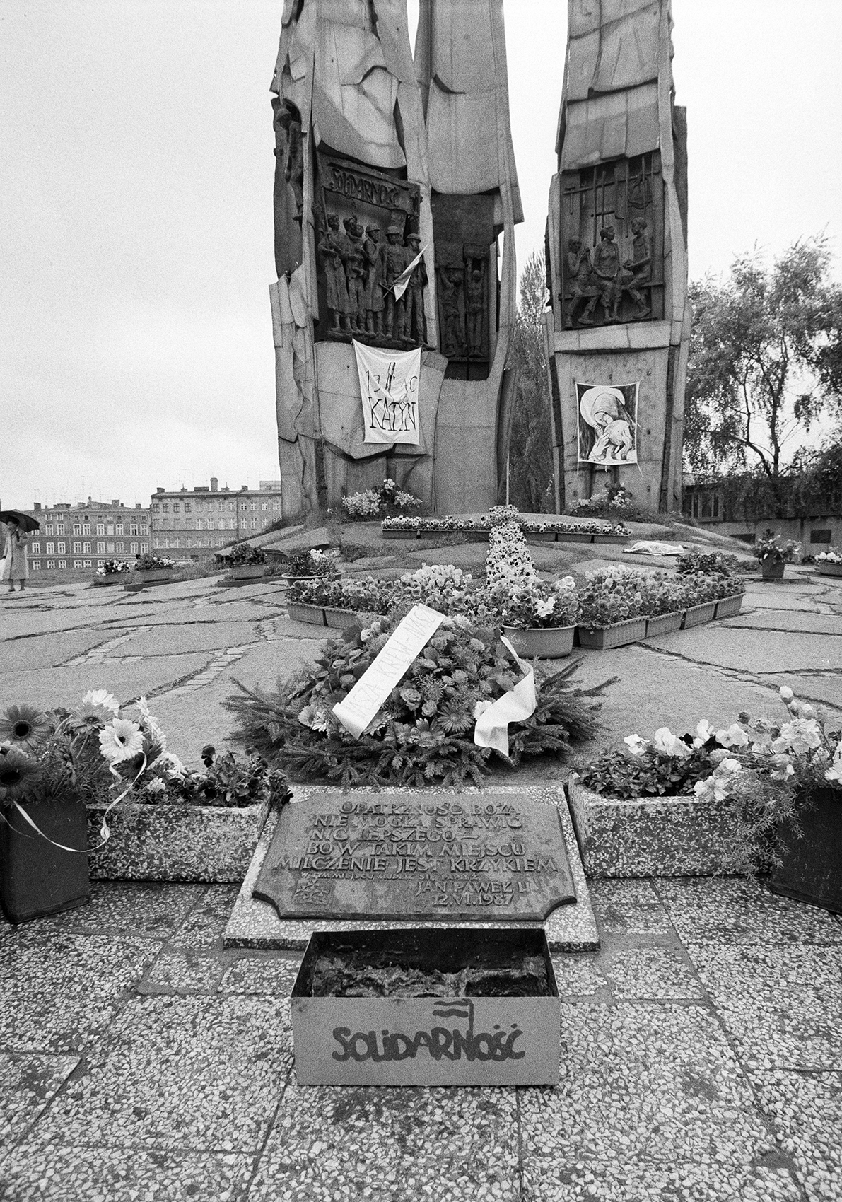 Zdjęcie 004. Pomnik Poległych Stoczniowców 1970 w Gdańsku z wieńcem złożonym przez Lecha Wałesę, 29 kwietnia 1989 r. Fot. Igor Witowicz. -