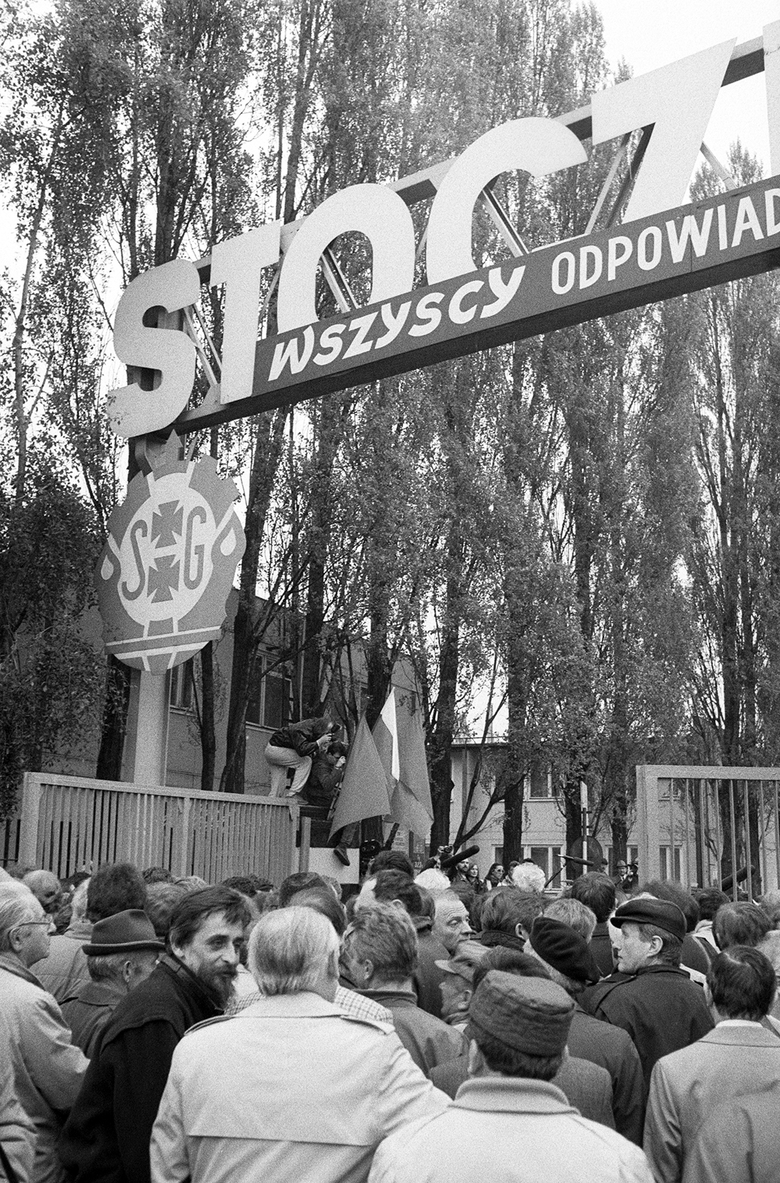 Zdjęcie 008. Kandydaci do sejmu i senatu z ramienia Komitetu Obywatelskiego „Solidarność” przed bramą Stoczni Gdańskiej im. Lenina, 29 kwietnia 1989 r. Fot. Igor Witowicz. -