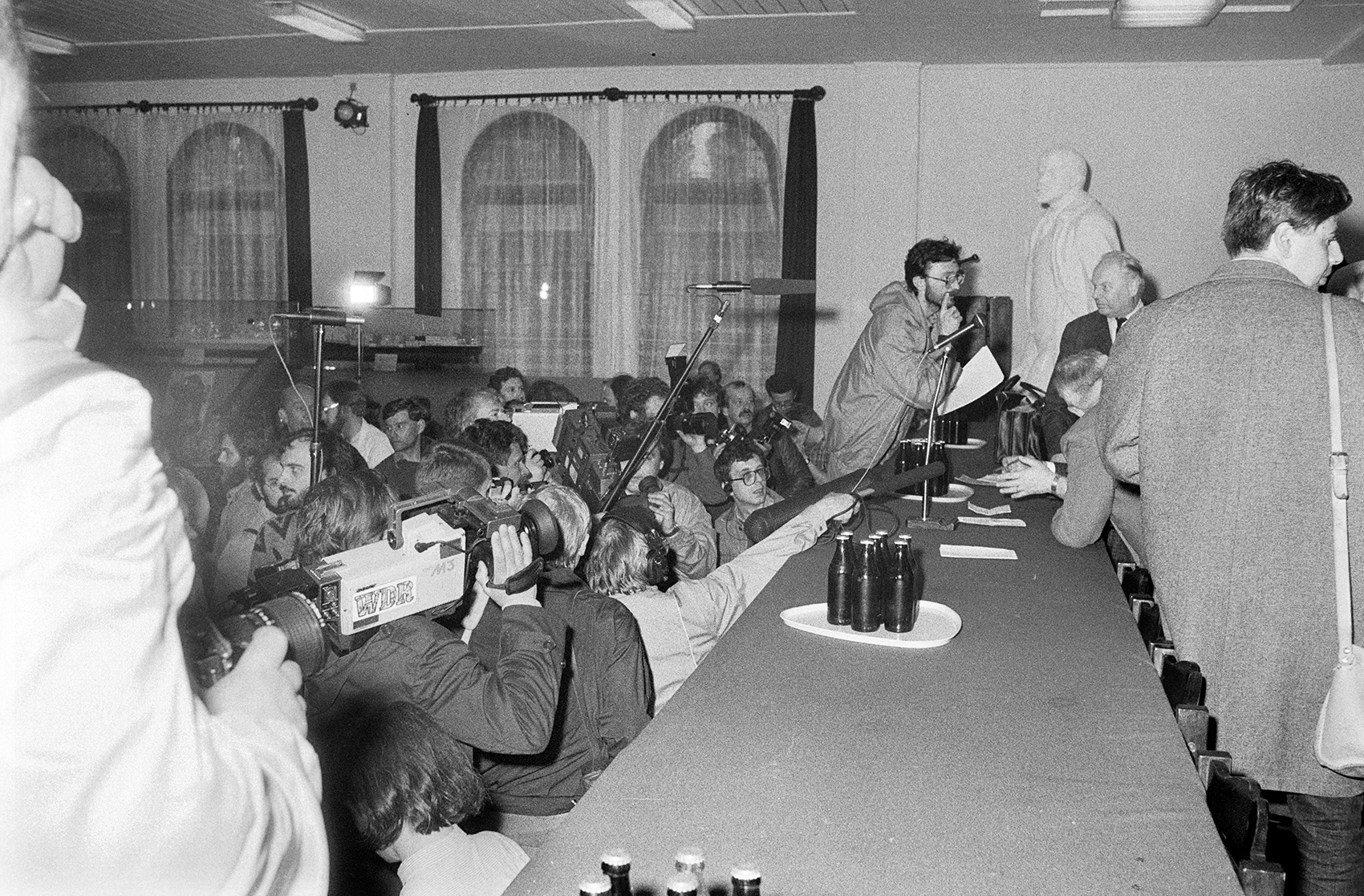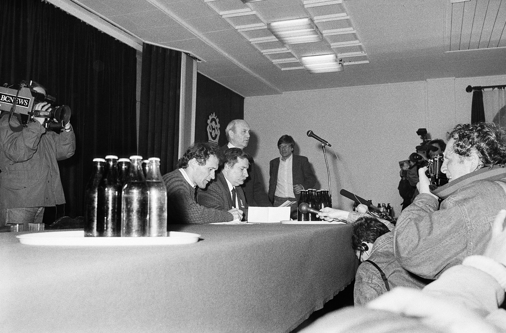 Zdjęcie 023. Dziennikarze i kandydaci do sejmu i senatu w Sali BHP Stoczni Gdańskiej im. Lenina 29 kwietnia 1989 r. Fot. Igor Witowicz. -