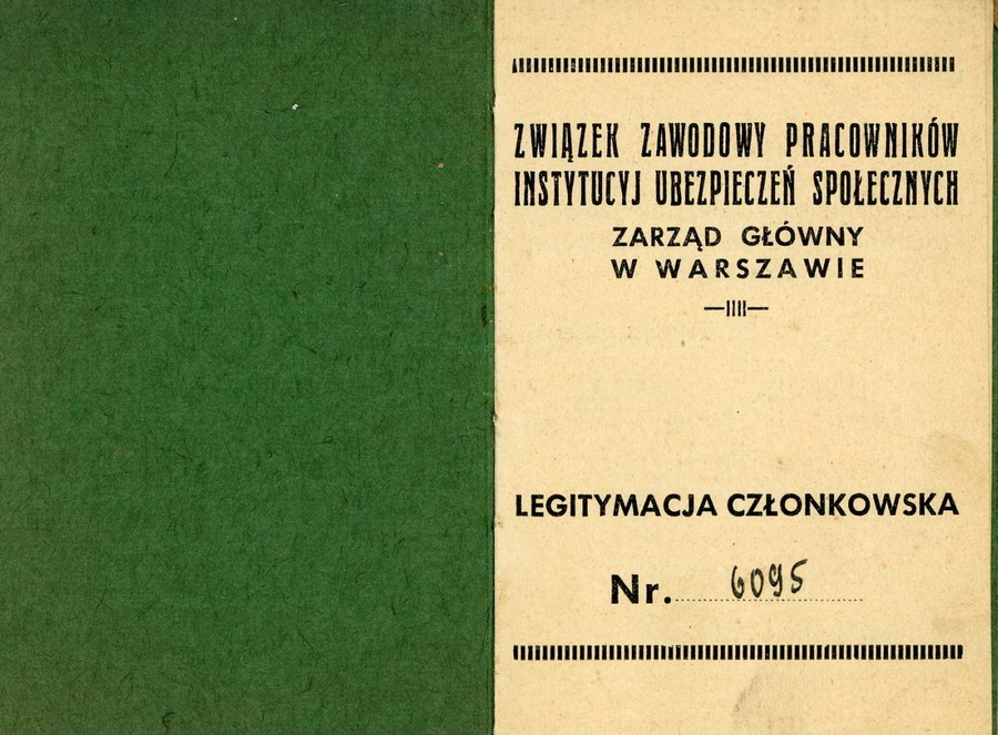 - Legitymacja członkowska Związku Zawodowego Pracowników Instytucyj Ubezpieczeń Społecznych należąca do Walerii Zwinczak, wystawiona w 1938 r.;